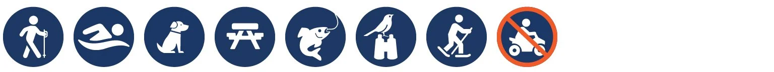 The path and shoreline are open to the public year round. Please stay on the marked trail.